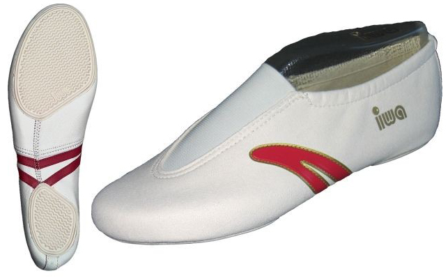 der Kunstturnschuh der Nationalmannschaften, für tägliches Training, aus strapazierfähigem velourisiertem Obermaterial (Mikrofaser). Schaft aus einem Stück, Vorderpartie gefüttert, Ristgummidehnungsausgleich, Schaftrand mit eingearbeitetem Gummizug, rotes IWA-Powergelfersenpolster, Laufsohle: Vorfußbereich und Ferse mit IWA-Spezialsohle.